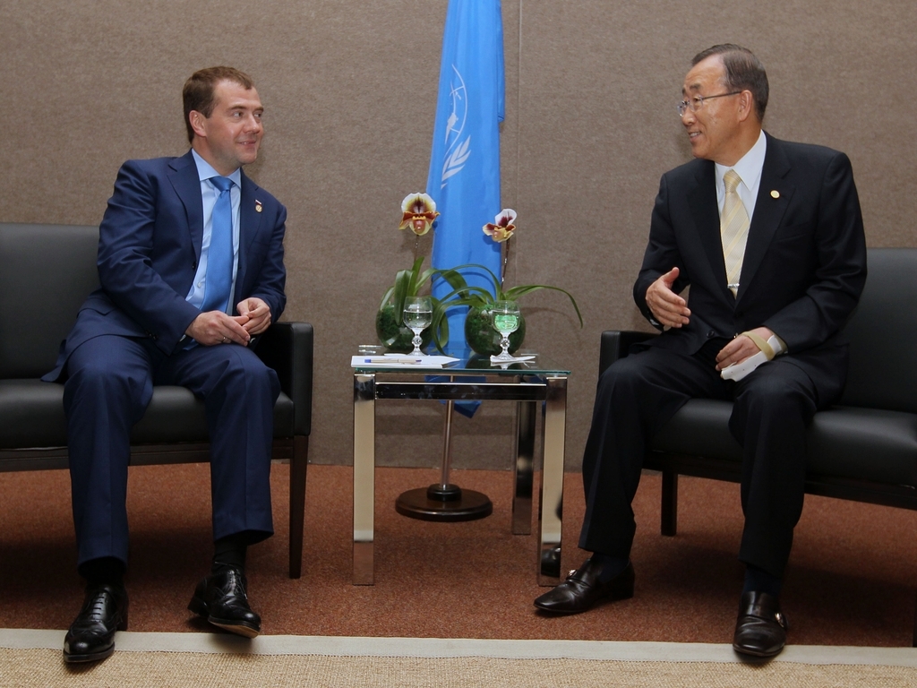 Председатель Правительства Российской Федерации Д.А.Медведев встретился в Рио-де-Жанейро с Генеральным секретарём ООН Пан Ги Муном