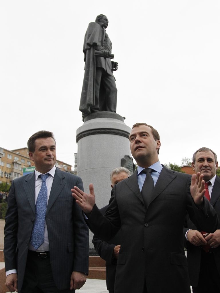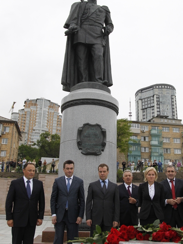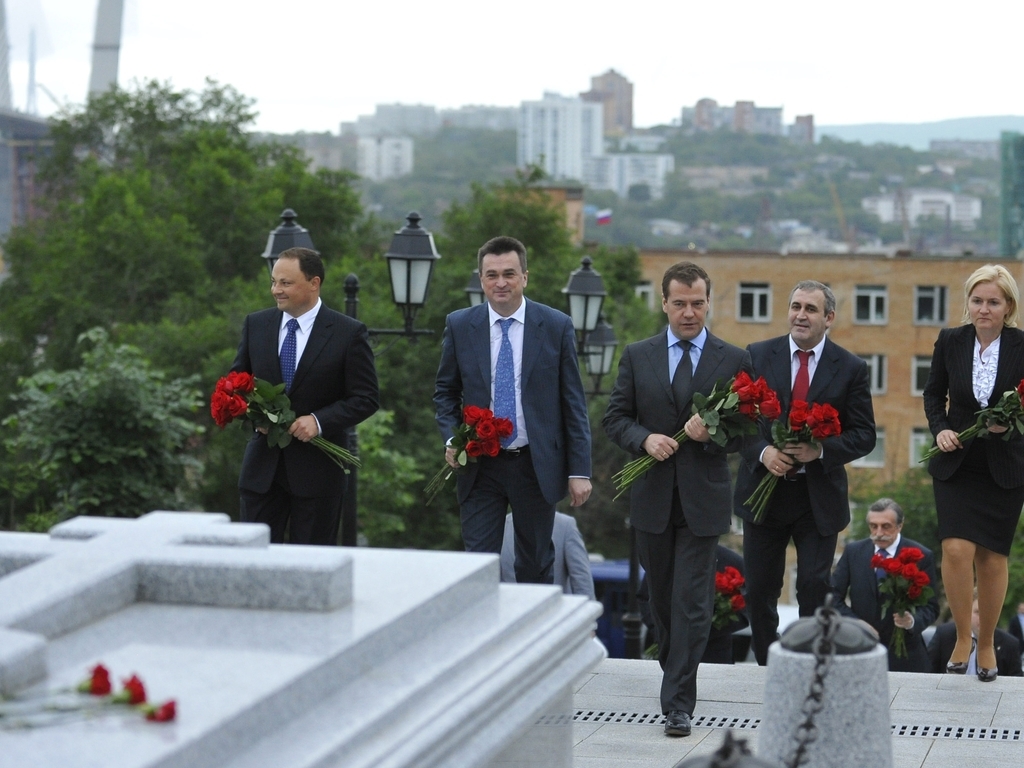 Дмитрий Медведев возложил цветы к месту захоронения генерал-губернатора Восточной Сибири Н.Н.Муравьева-Амурского во Владивостоке и пообщался с жителями города