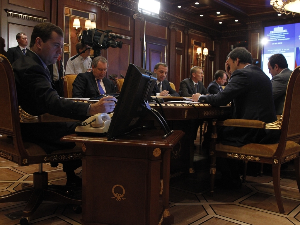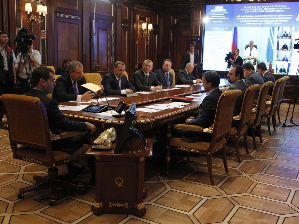 Д.А.Медведев провёл совещание в режиме видеоконференции по ситуации, сложившейся в регионах, подвергшихся воздействию аномально высоких температур