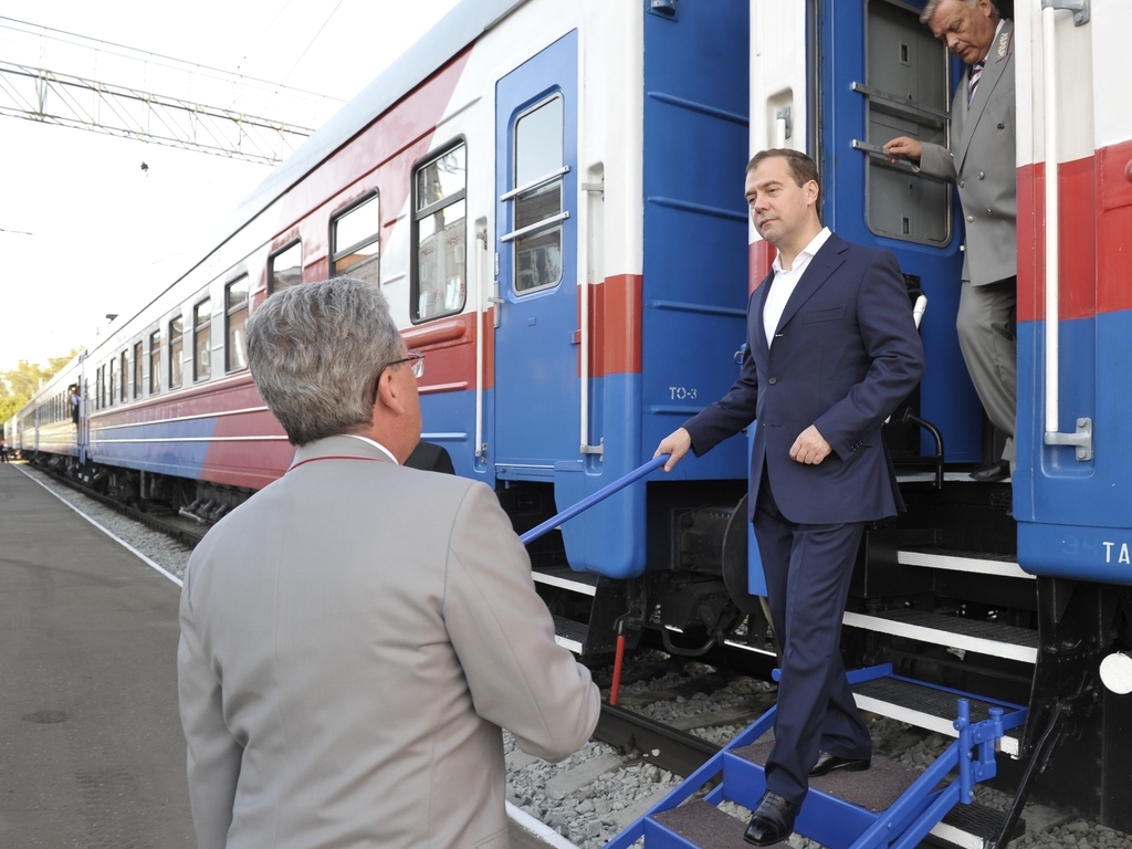Д.А.Медведев посетил в Омске эксплуатационное локомотивное депо и ознакомился с работой «медицинского поезда»