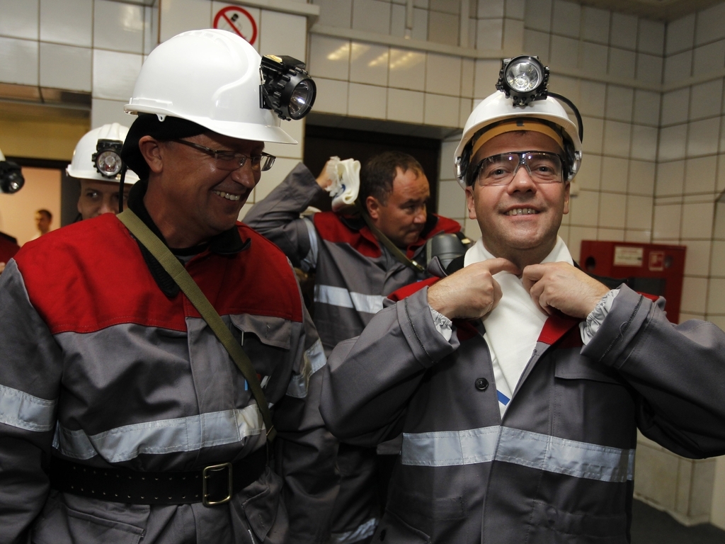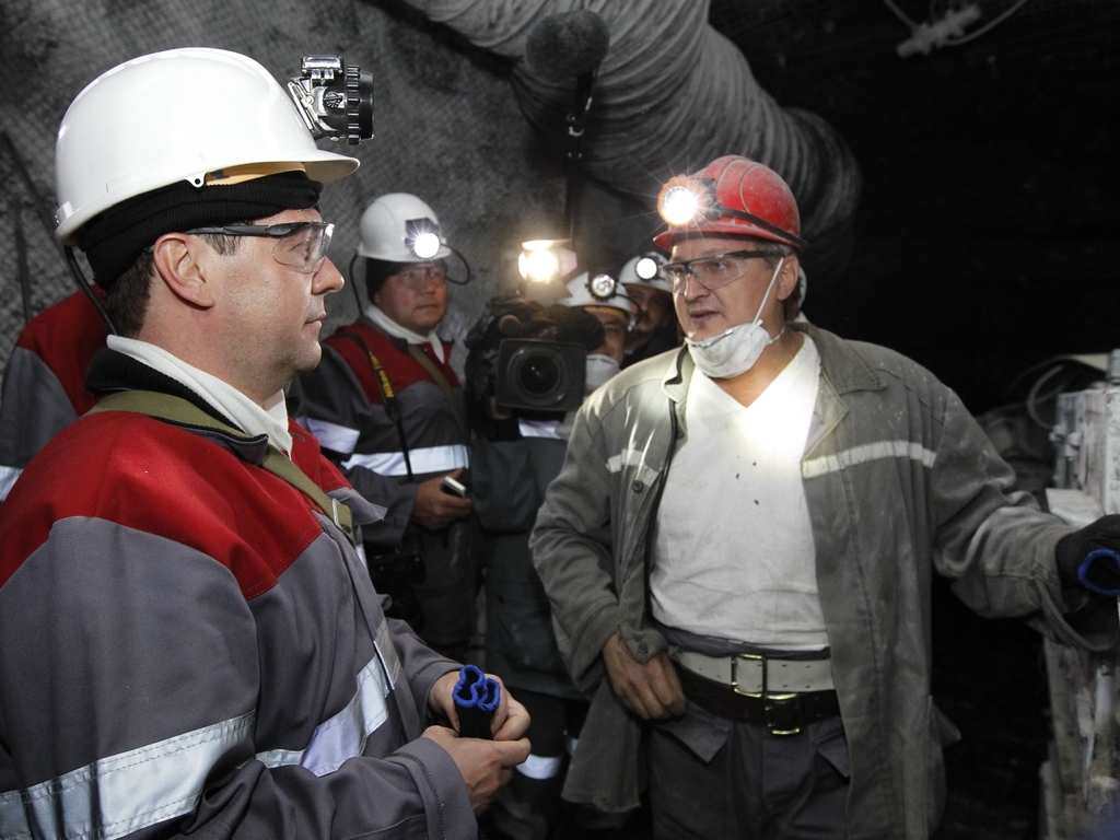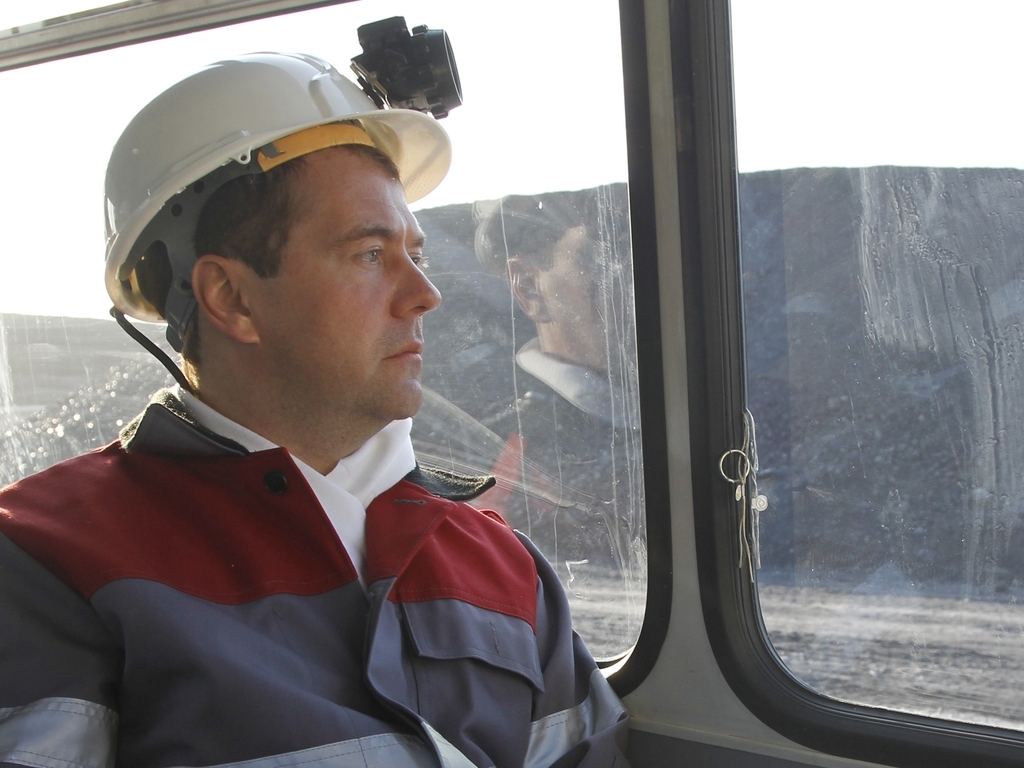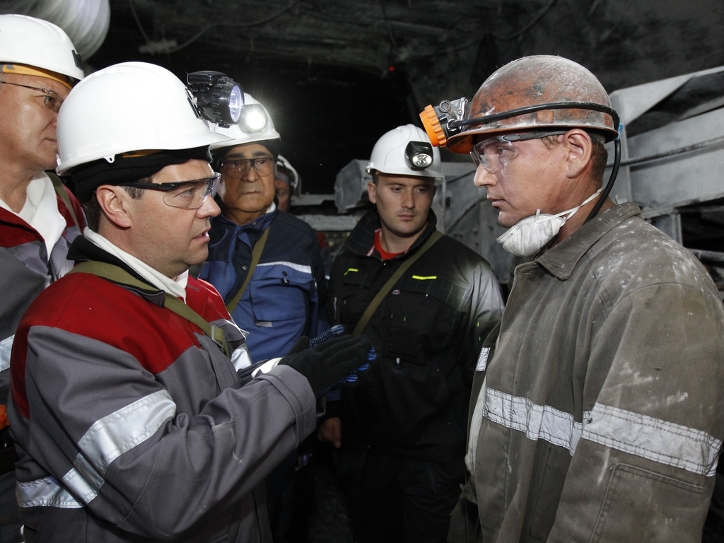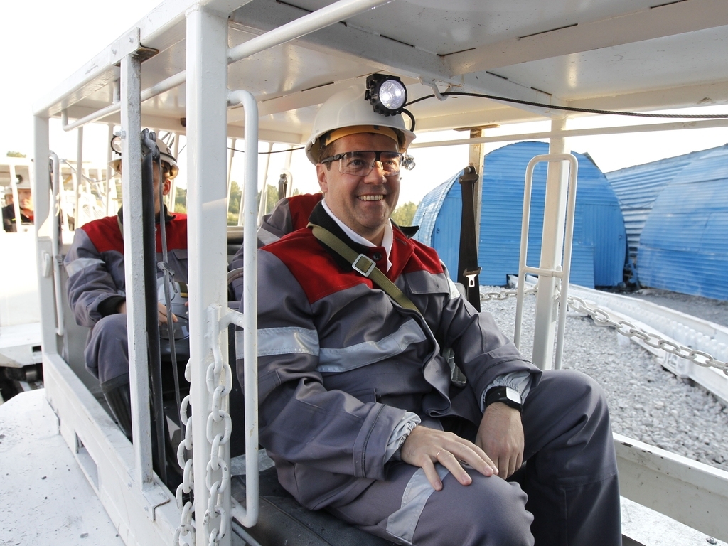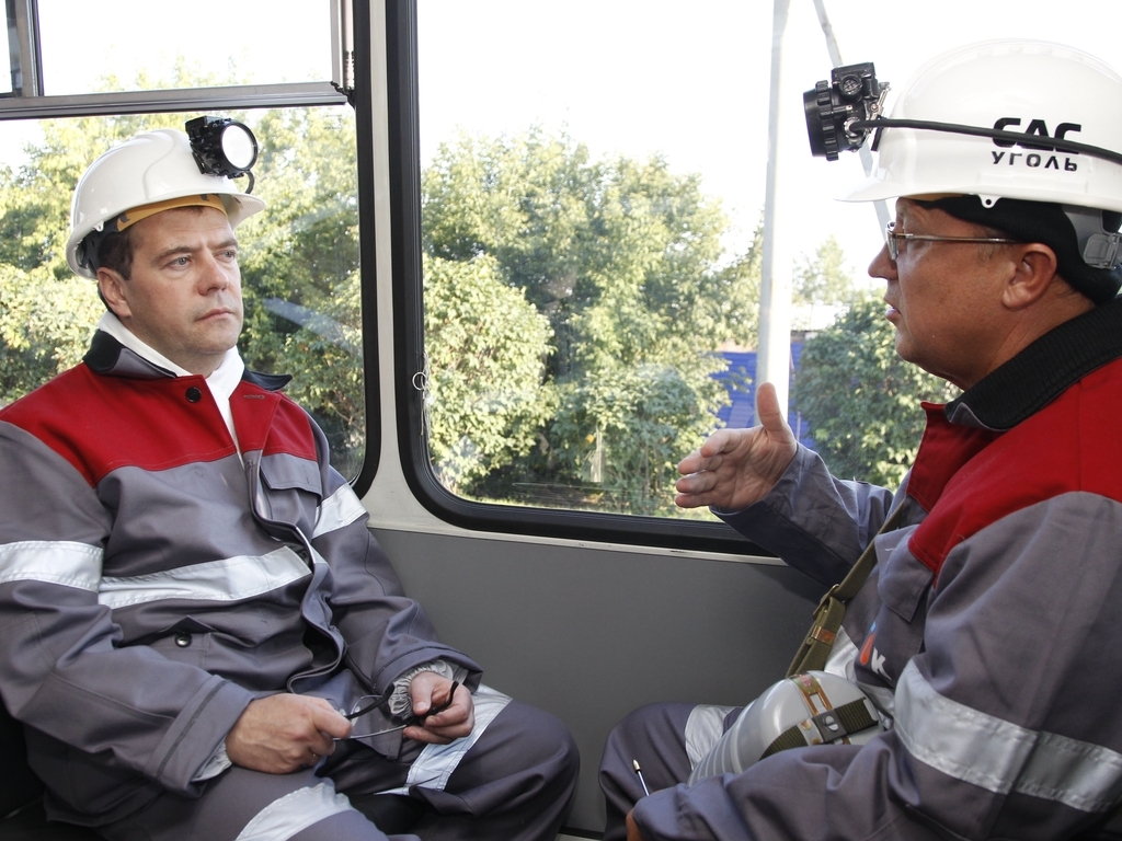 Дмитрий Медведев посетил угольную шахту «Листвяжная», где спустился в забой