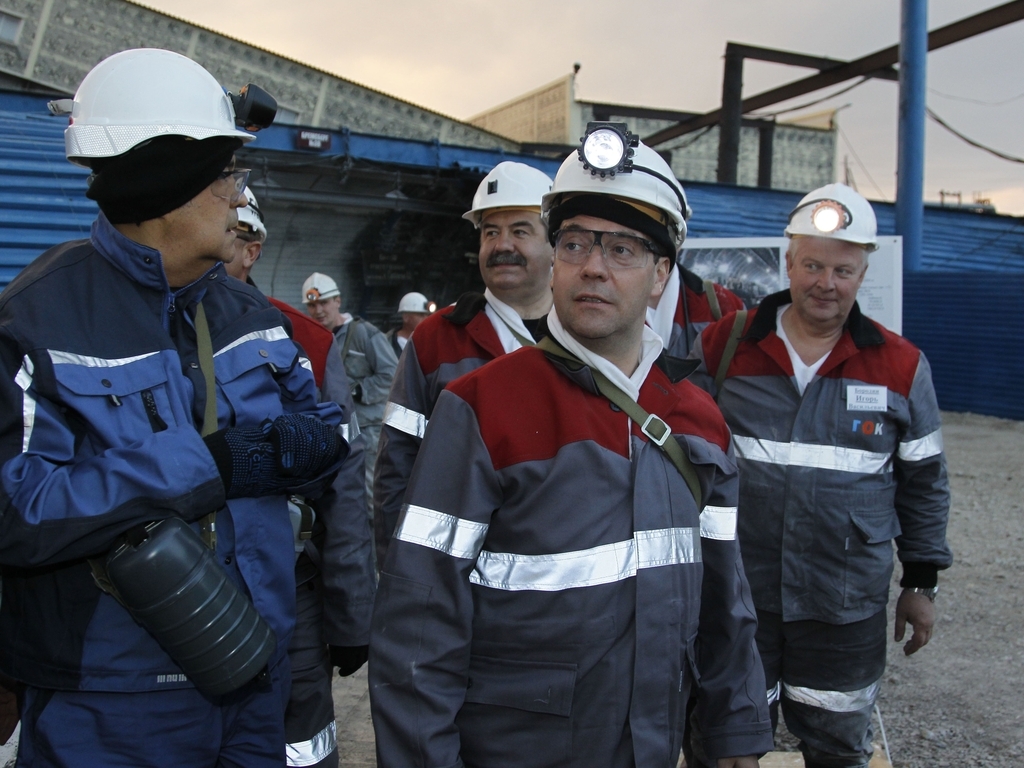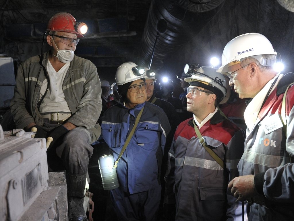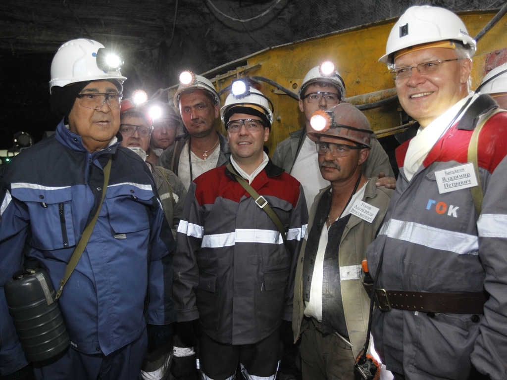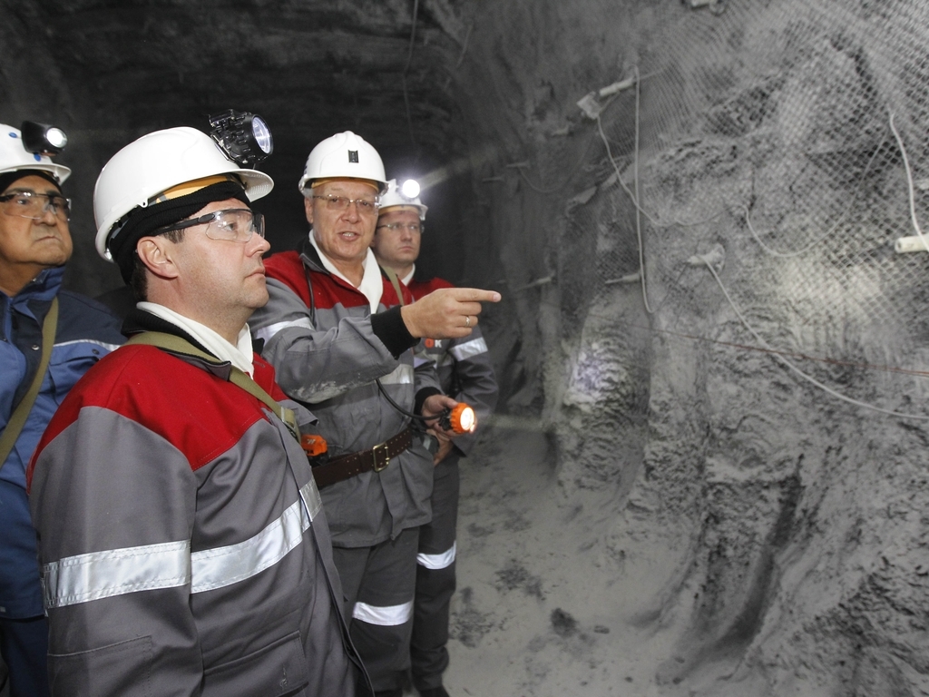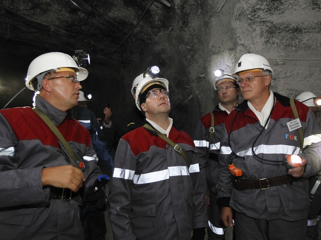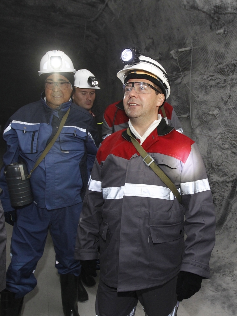 Дмитрий Медведев посетил угольную шахту «Листвяжная», где спустился в забой