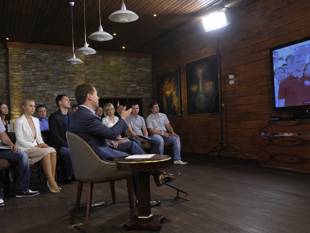 Председатель Правительства Российской Федерации Д.А.Медведев встретился с членами Всероссийской общественной организации «Молодая Гвардия Единой России» и пообщался с представителями Федерального образовательного лагеря «Гвардейск-2012» в режиме видеоконференции